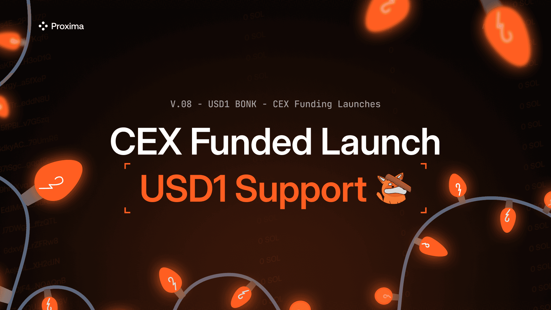 Proxima v0.8 Part II extends the new funding infrastructure with direct CEX funding on launch pages and introduces USD1 mode on LetsBonk, improving capital control and execution stability across launches.